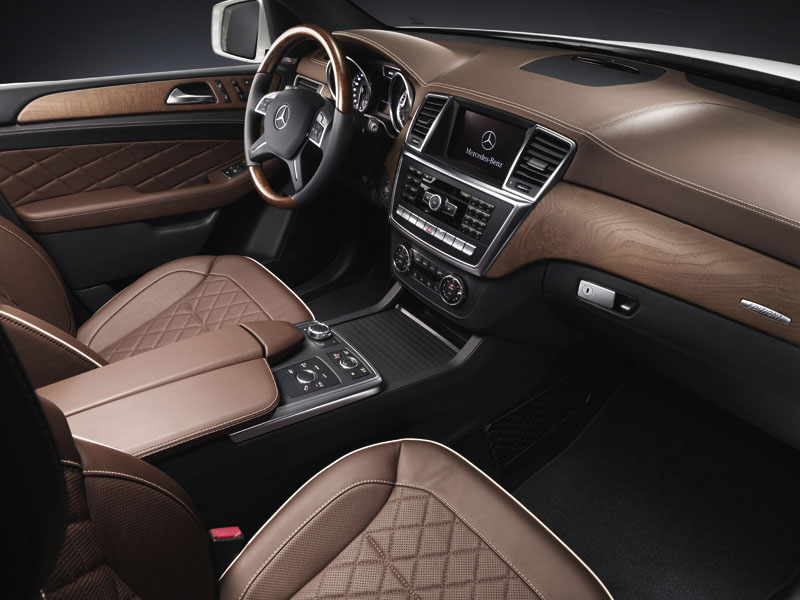 Miris luksuza u enterijeru obavezna je oprema svih Mercedesovih modela. U ML-u ovaj miris dobija posebnu dimenziju, zahvaljujući kombinaciji najkvalitetnijeg aluminijuma, drveta i kože. Dizajn enterijera svojevrsna je evolucija rješenja viđenih, kako u prvom Mercedesovom terenskom vozilu G klasi, tako i kod prethodne dvije generacije ML-a, sa posebnim naglaskom na ergonomiju. Zahvaljujući takvom pristupu ML danas nudi nenametljiv spoj klasičnih retro instrumenata i najsavremenijih multimedijalnih sistema. Instrument tabla izvedena je u kombinaciji analognih instrumenata i centralnog displeja, na kojem se mogu očitati najvažniji parametri u vezi sa vožnjom, poput prosječne potrošnje, pređenog puta, autonomije, temperature... Još informacija o vozilu, ali i multimedijalnim uređajima, te navigacionom sistemu moguće je očitati putem središnje postavljenog monohromatskog displeja sa dijagonalom od 11,4 cm (opcije 14,7 i 17,8 cm). Grafički prikaz Mercedesovog Comand sistema, koji između ostalog objedinjuje funkcije navigacije, radija, CD playera, navigacije... je krajne pojednostavljen. Za razliku od prethodnika, koji je imao okrugle otvore ventilacije, novi model pravi potpuni zaokret ka uglastim formama. Osim što izgledaju drugačije, novi ventilacioni otvori omogućavaju i bolju ventilaciju kabine, odnosno preciznije usmjeravanje svježeg hladnog ili toplog vazduha.