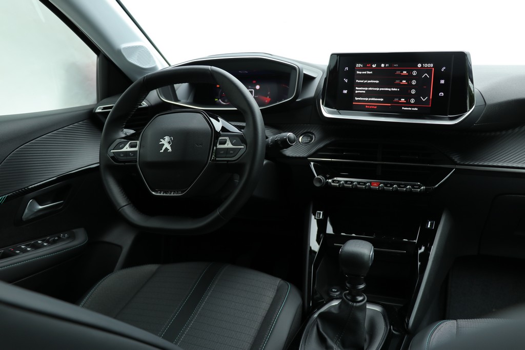 Nažalost, ovaj epitet se ne može upotrijebiti i za enterijer koji nam donosi još jednu stepenicu u razvoju iCocpita, čije proporcije je osmislio i već godinama favorizuje prvi čovjek Peugeotovog dizajna Gilles Vidal. Originalnost je tu, ali je potraga za skladom i funkcionalnošću zadatak na kojem će svaki pojedinačni vozač morati da poradi sam za sebe. Neobična koncepcija sa malim, zasječenim upravljačem trkačkog formata i izdignutim digitalnim instrumentima, zahtijeva koordinaciju sa vozačevim sjedištem kako bi se pronašao idealan položaj. Visokim vozačima ovaj postupak je najlaganiji, jer njihov pogled prirodno pada preko upravljača, ali će oni niži morati da se potrude, pa i da spuste upravljač u „krilo“ kako bi istovremeno mogli da upravljaju vozilom i da dođu do za vožnju bitnih informacija. Mada na centralnom grebenu ima veoma originalnu, lijepu i kvalitetno izrađenu klavijaturu sa sedam tastera, koje olakšavaju korištenje funkcija na centralnom 7-inčnom na dodir osjetljivom ekranu, i ovaj proces će zahtijevati određeno privikavanje. Nakon nekoliko dana mnoge upravljačke operacije u kabini lagano prelaze u automatizam i rutinu, ali je činjenica da je prvi utisak potpuno drugačiji i da bi nažalost mogao da navede salonske kupce na pogrešne zaključke. Zbog svoje originalnosti u enterijeru 208-ica jednostavno traži vremena i razumijevanja, jer je mnogo toga novo i „drugačije“.