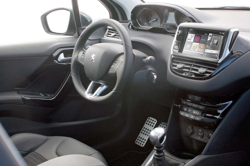 Već na prvi pogled je jasno da je konstrukcija enterijera u potpunosti nova te da se ni u jednom detalju ne oslanja na rješenja sa prethodne generacije. Peugeot 208 je dobio prostorno istu, ali ergonomski prostraniju kabinu u odnosu na 207. Manje kolo upravljača omogućilo je lakši ulazak u vozilo i jednostavnije pronalaženje „idealnog“ položaja. Instrument tabla i centralni greben su pomaknuti ka naprijed, čime je dobijen dodatni prostor i omogućeno podizanje komandi klima-uređaja na preglednije i lakše dostupnije mjesto. Osim osjećaja veće komocije Francuzi kod enterijera u prvi plan stavljaju i kvalitet ugrađenih materijala, ali i završnu obradu. Kroz nekoliko paketa opreme biće ponuđeno praktično sve što je danas dostupno u gradskoj klasi, a vrhunac predstavlja sedaminčni na dodir osjetljivi displej, koji objedinjuje radio i navigaciju, te Bluetooth hands-free i USB konekciju.