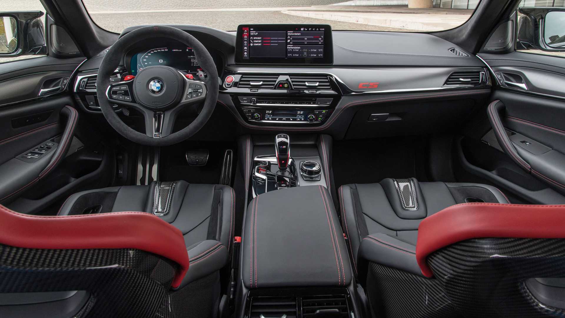 U kabini sve je podređeno sportskim detaljima uključujući i karbon sjedišta, na kojima je urezan obris 20,7 kilometara dugačke staze Nurburgring Norschleife. Nagađalo se da bi ovo zapravo mogao biti nagovještaj rekorda staze, ali BMW za sada ne govori ništa više o tome. Sa vanjske strane odmah se mogu primijetiti zlatne obloge i tretman ugljeničnim vlaknima. Jedinstvena zlatno-bronzana boja kako je BMW naziva nalazi se na prednjoj maski, raznim drugim oznakama, kao i na 20-inčnim točkovima. Ugljenična vlakna pokrivaju površine poput poklopca motora, prednjeg radjelnika, zadnjeg difuzora i poklopaca retrovizora. Zahvaljujući upravo ovim nadogradnjama BMW kaže da je 70 kilograma ušteđeno u odnosu na M5 Competition. Kako bi oslikao sportski duh sedana, snopovi u obliku slova L dobili su žutu umjesto bijele boje.