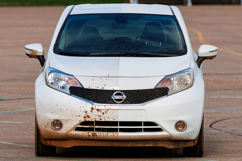 Posebno osmišljenom superhidrofobičnom i oleofobičnom bojom (što znači da odbija vodu i ulja), obojen je potpuno novi Nissan Note, pa je tako postao prvo samočisteće vozilo na svijetu.